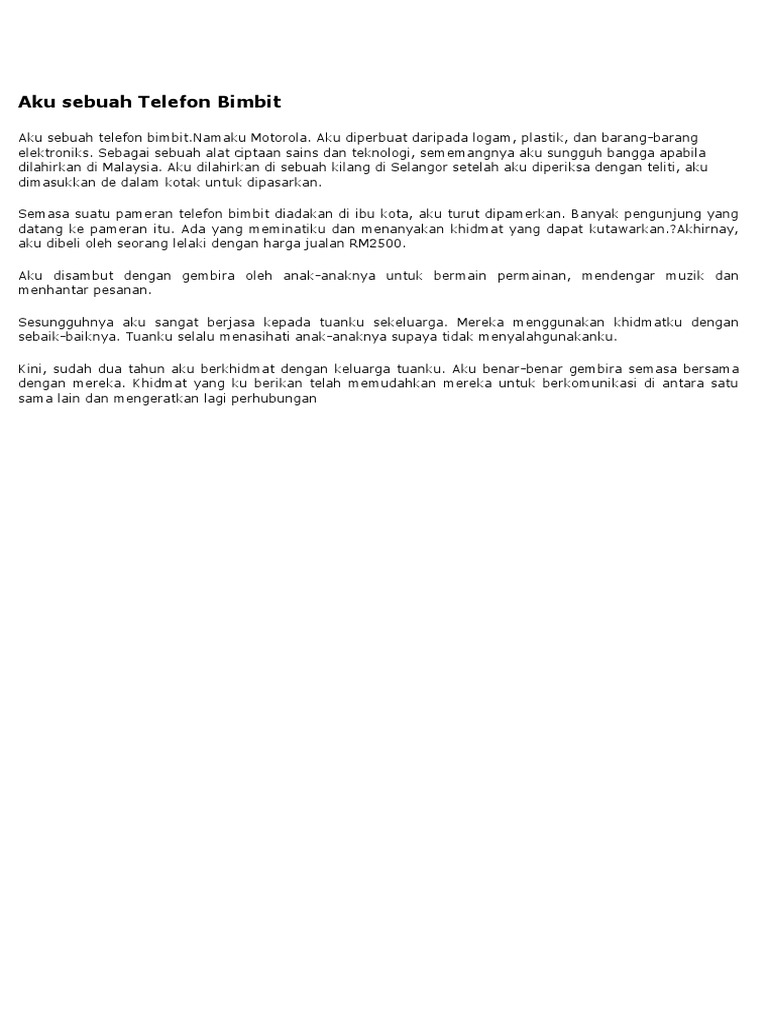 Aku Sebuah Telefon Bimbit Karangan Pdf